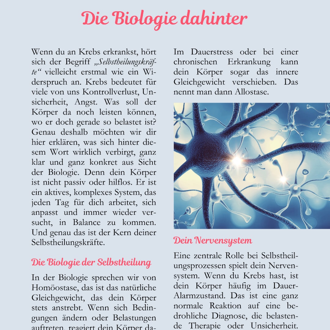 Du musst im Krebsalltag so viel aushalten. Und trotzdem willst du nicht nur „durchhalten“. Du willst dich stärken, ohne dich zu überfordern, ohne dubiose Versprechen, ohne Chaos im Kopf.